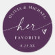 Moody and elegant, these dark plum purple “Her Favorite” stickers feature soft white script and a heart accent. Perfect for romantic, jewel-toned weddings, and a beautiful match to the “His Favorite” version for stylish his and hers favors.