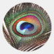 Pegatina Redonda Pluma de pavo real de cobre colorida