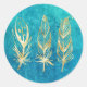 Pegatina Redonda plumas azul turquesa y oro