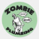 Diseño de logotipo para una compañía de fontanería falsa e inexistente, "Fontanería Zombie". Texto con dibujo de b/w de un fontanero zombi, que dice: "¡Drenes! ¡CEREBROS!" Camisetas, novedades, regalos.