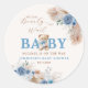 Pegatina Redonda Podemos Esperar A Baby Shower Blue Boho Bear