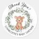 ¿Estás buscando un hermoso tema de la ducha para una futura mamita? Echa un vistazo a esto que podemos esperar a que Baby Shower Gracias Pegatina redondo clásico. Cuenta con un bonito oso de peluche y una corona de eucaliptos con acuarela. Puede agregar sus propios detalles muy fácilmente utilizando los campos de plantilla. Tenemos una colección completa con este tema, puede verlos haciendo clic debajo del producto (otros productos de esta colección, si hace clic en el nombre de la colección puede ver todos los elementos coincidentes). ¡Que tengas un gran fiesta!