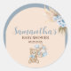 Celebra la próxima llegada con este encantador Pegatina redondo clásico de Baby Shower "We Can Bearly Wait". Con un oso dulce que sostiene un montón de globos azules y marrones, enmarcado por un elegante arco azul y marrón y acentuado con delicados elementos florales azules y pasto de pampas, este pegatina le agrega un toque caprichoso y personal a los favores de tu fiesta, invitaciones o notas de agradecimiento. ¡Perfecto para añadir un detalle memorable a tu celebración! BBS377