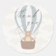 PUEDES ESPERAR ANTICUAMENTE para dar la bienvenida a tu pequeño al mundo. Celebra tu pequeña con nuestra adorable y sencilla colección temática de osito de peluche. Este diseño pegatina favorece la creación de un polvoriento globo de aire caliente azul con un oso marrón suave en el interior, así como una elegante tipografía serif balanceada, sans serif y caprichosa.