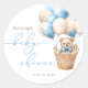 Podemos esperar rápidamente a que el oso de peluche caliente globo azul niño ducha bebé pegatina redondo clásico.
