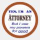 Pegatina Redonda Poderes para un buen abogado diciendo