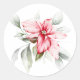 Pegatina Redonda Poinsettia acuarela ramas de invierno