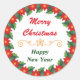 Pegatina Redonda Poinsettia Border Merry Christmas