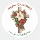 Pegatina Redonda Poinsettia Bouquet Christmas Cross