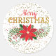 Pegatina Redonda Poinsettia, la Purpurina de oro navideño