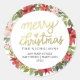 Pegatina Redonda Poinsettia Merry Christmas Wreath | Dirección de d