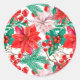 Pegatina Redonda Poinsettia, Pine Boughs y Red Berries