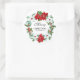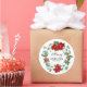 Pegatina Redonda Poinsettia y acebo en acuarela | Feliz Navidad