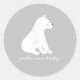 Pegatina Redonda Polar Bear Cub Invierno Nieve Gris Baby Shower