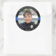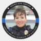 Heroes Live Forever ! Honor your beloved police officer and with this Thin Blue Line Police Memorial sticker in a black and blue design in police flag colors. Personalize with your officer's photo, name, and EOW date. This thin blue line police memorial sticker will be a treasured keepsake to honor a fallen police officer or law enforcement officer. Perfect for police departments to honor a fallen officer. COPYRIGHT © 2020 Judy Burrows, Black Dog Art - All Rights Reserved. Police Memorial Fallen Officer Heroes Live Forever Classic Round Sticker
