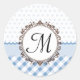 Pegatina Redonda Polkadots azules, chequeos y bandas con monograma