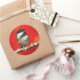 Pegatina Redonda Pollo de punta negra sobre fondo rojo otoñal