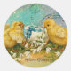 PEGATINA REDONDA POLLOS, FLORES, HUEVO ORIENTAL EN DERRAMES AZULES