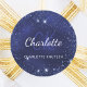 Pegatina Redonda Polvo de purpurina azul monograma nombre