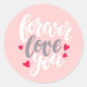 Este divertido diseño El día de San Valentín, boda o pegatina de aniversario presenta textos en blanco y gris de "siempre te amo" decorados con corazones pequeños. El fondo rosado de Rubor es opcional y se puede cambiar a cualquier color.