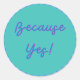 Fantástico pegatina de moda que presenta al adolescente habla popular diciendo "¡Porque sí!" ¡Póngalo en el teléfono, en el tablet, en el portátil, en la taza de café, donde sea! Afirmación en una frase corta, dulce, hasta el punto, que mantiene fuerte una actitud positiva de lo que se puede hacer.