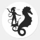 Pegatina Redonda Poseidón, diseño de relieve griego