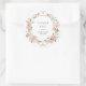 Estas hermosas pegatinas de agradecimiento para tu baby shower, despedida de soltera o bautizo presentan una corona de hermosas rosas de acuarela rosadas con hojas verdes y acentos de rosa dorado falso sobre un fondo blanco.