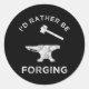 Preferiría Estar Forjando. Este divertido y angustiado diseño de herrería vintage es un gran Navidad, el Día del Padre o regalo de cumpleaños para un esposo, novio, papá, hijo, abuelo o tío que es herrero y ama la falsificación y la metalurgia. Si le gusta prender fuego en su garaje o cobertizo, y es herrero, metalero, farriero o hacedor de cuchillos, y le encanta trabajar con metalizado falsificado, ¡entonces este diseño es para usted! Muestra un gráfico angustiado de un martillo y un yunque.