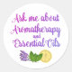 Pegatina Redonda Pregúntame sobre Aromaterapía y el negocio de acei