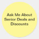 Pegatina Redonda Pregúntame sobre ofertas y descuentos para adultos