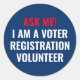 Pregúntenme si soy un voluntario de registro de votantes, elección política patriótica azul rojo, Pegatinas voluntarios y etiquetas para ayudar a registrar votantes. Minimalista estilo sencillo y elegante. Texto rojo y blanco sobre fondo azul marino. Con el texto personalizado para que pueda personalizarlo y hacerlo único para sus necesidades.
