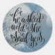 Preguntó y dijo Sí Pegatina Redondo Clásico ¡Haz tu palo de estilo único creando pegatinas personalizados para cada ocasión! Puedes usarlas para un envío especial, para manualidades infantiles u otros proyectos artísticos. ¡Estas pegatinas tienen infinidad de usos! Personalízalo con tus propios diseños, patrones, imágenes y texto.