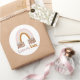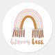 Pegatina Redonda Preocuparse menos motivacional boho arcoiris rosa