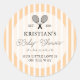 Pegatina Redonda Preppy Orange Tennis Theme Chic Baby Shower