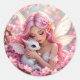 Pegatina Redonda Pretty Pink Elven Fairy & Dragon