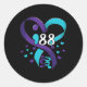 Pegatina Redonda Prevention Awareness 988 Heart Teal And Purple