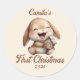 Pegatina Redonda Primer conejo navideño del bebé personalizado