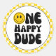 Pegatina Redonda Primer cumpleaños de la Emoji de sonrisa de un tío