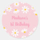 Pegatina Redonda Primer cumpleaños de Pink Daisy