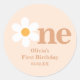 Pegatina Redonda Primer cumpleaños de Retro Boho One Daisy