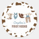 Pegatina Redonda Primer cumpleaños de Rodeo Western Cowboy