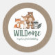 Pegatina Redonda Primer cumpleaños de un animal de bosque salvaje