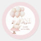 Pegatina Redonda Primer cumpleaños de un pastel rosado de una galli