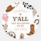Pegatina Redonda Primer cumpleaños de Western First Rodeo Chica Gra