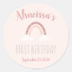 Pastel de arcoiris rosado y nubes primer cumpleaños Pegatina redondo clásico