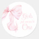 Pegatina Redonda Primer cumpleaños del Chica de Bow Rosado