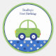 Pegatina Redonda Primer cumpleaños del coche verde y azul personali