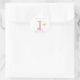 Pegatina Redonda Primer cumpleaños rosado simple con mariposa y nom