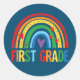 Pegatina Redonda Primer Grado Arcoiris De Vuelta Al Equipo Escolar