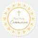 Primera Comunión de Oro Blanco con cáliz, cruz y velas Invitación Elegante Primera Santa Comunión incluye cáliz, estrellas de oro y cruz.